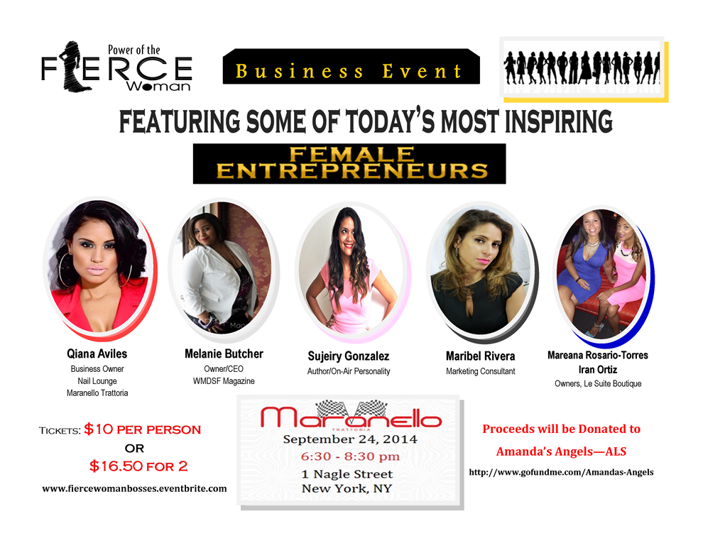 We are starting the Autumn season off with a bang. The Power of the F.I.E.R.C.E Woman will be celebrating Hispanic Heritage Month with an event focused on bringing FIERCE, like minded female BOSSES together. Join me September 24, 2014 at Maranello’s as I host the very first Power of the FIERCE Woman Entrepreneurs Forum.